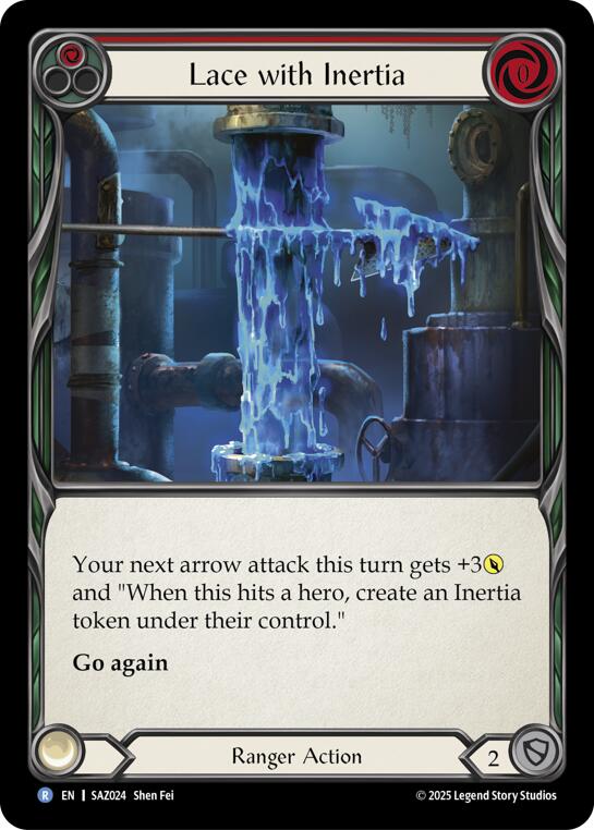 Your next arrow attack this turn gets +3POWER and "When this hits a hero, create an Inertia token under their control." Go again